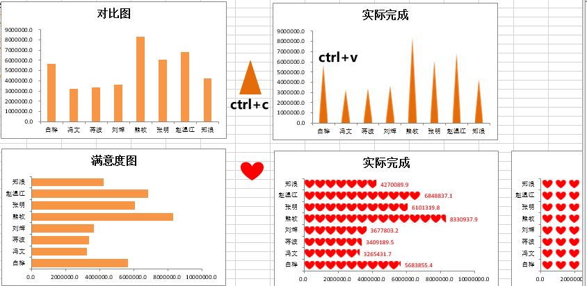 比比谁更长:数据条表示数值的大小,从而实现系列数据的对比。
