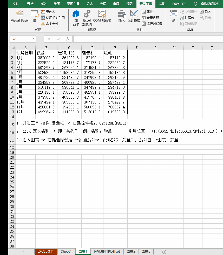基本原理 动态图表的核心原理,筛选。通过筛选条件,从图表或数据源上控制输出效果。