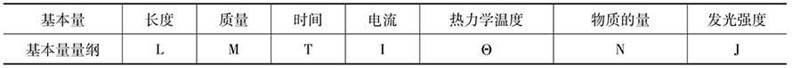 量纲(dimension of a quantity)是指给定量与量制中各基本量的一种依从关系,它用与基本量相应的因子的幂的乘积去掉所有数字因子后的部分表示。量纲是一个量的表达式,在实际工作中,任何科技领域中的规律、定律,都可通过各有关量的函数式来描述。通过量纲可以检验量的表达式是否正确,如果一个量的表达式正确,则其等号两边的量纲必然相同,通常称它为“量纲法则”。 因子的幂就是按指数增加的因子。每个因子是一个基本量的量纲。基本量量纲的约定符号是单个大写正体罗马字母。在国际量制(ISQ)中,基本量的量纲符号见表1-2。 表1-2 基本量的量纲符号